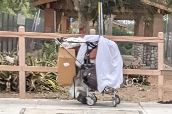 Years ago our Mayor published a story claiming that he is going to put a stop to the stolen shopping carts in Stanton. I didn't believe the story so I never mentioned it to you. And, as we can see here, a stolen shopping cart. So, you can see why I never repeated that story. I didn't believe the mayor then and we can see why.