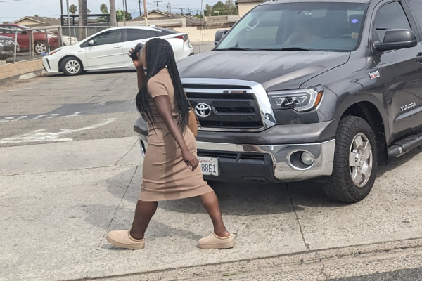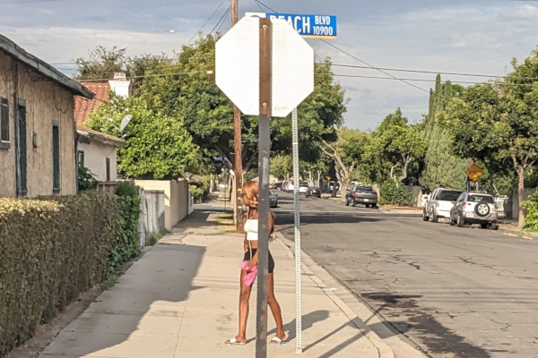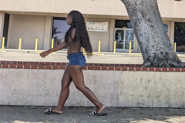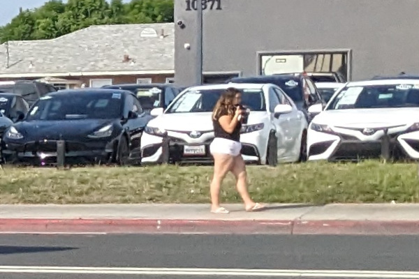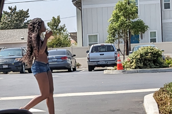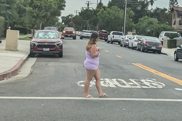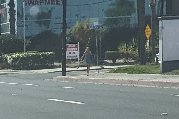 Looks like a regular person walking home or something. Except when she is on Beach Blvd. all day long...