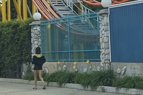 Seems like there are always ladies next to the children's amusement park Adventure City.