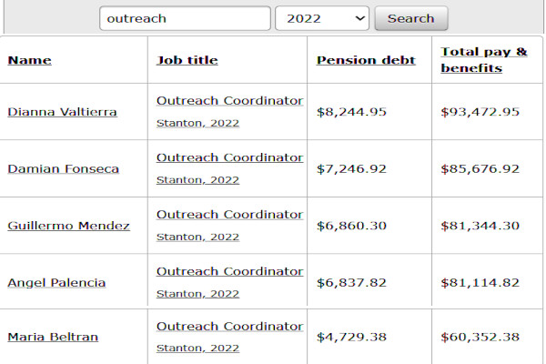 Stanton's homeless outreach coordinators took over the job of doing nothing effective and notice above how much this cost us in 2022. Looks like around $400,000. And, during 2022 the homeless took over our parks, parking lots, sidewalks... a huge invasion of homeless thanks to the Outreach Coordinators doing nothing productive. What a waste of your tax money year after year. Click here and see for yourself.